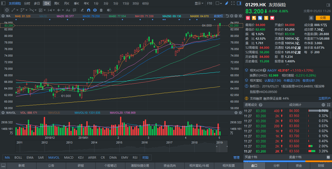 大和预计友邦首季VNB增长21%维持目标价95港元