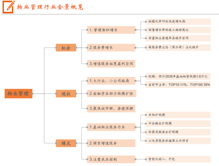 物业管理行业全景图“城镇化+消费升级+渗透率提升“多重驱动物管发展方兴未艾