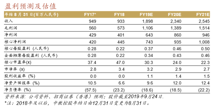 ■ 新增学校将与中教集团现有学校形成协同效应,提升20财年收入10%、 核心每股盈利6%