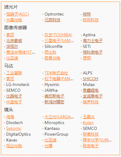 第二:摄像头,包括滤光片、图像传感器、马达、镜头,涉及众多国内外供应商。比如,疫情严重的日韩,智能手机摄像头供应大户索尼、三星产能能否及时供应得上,得打一个问号。