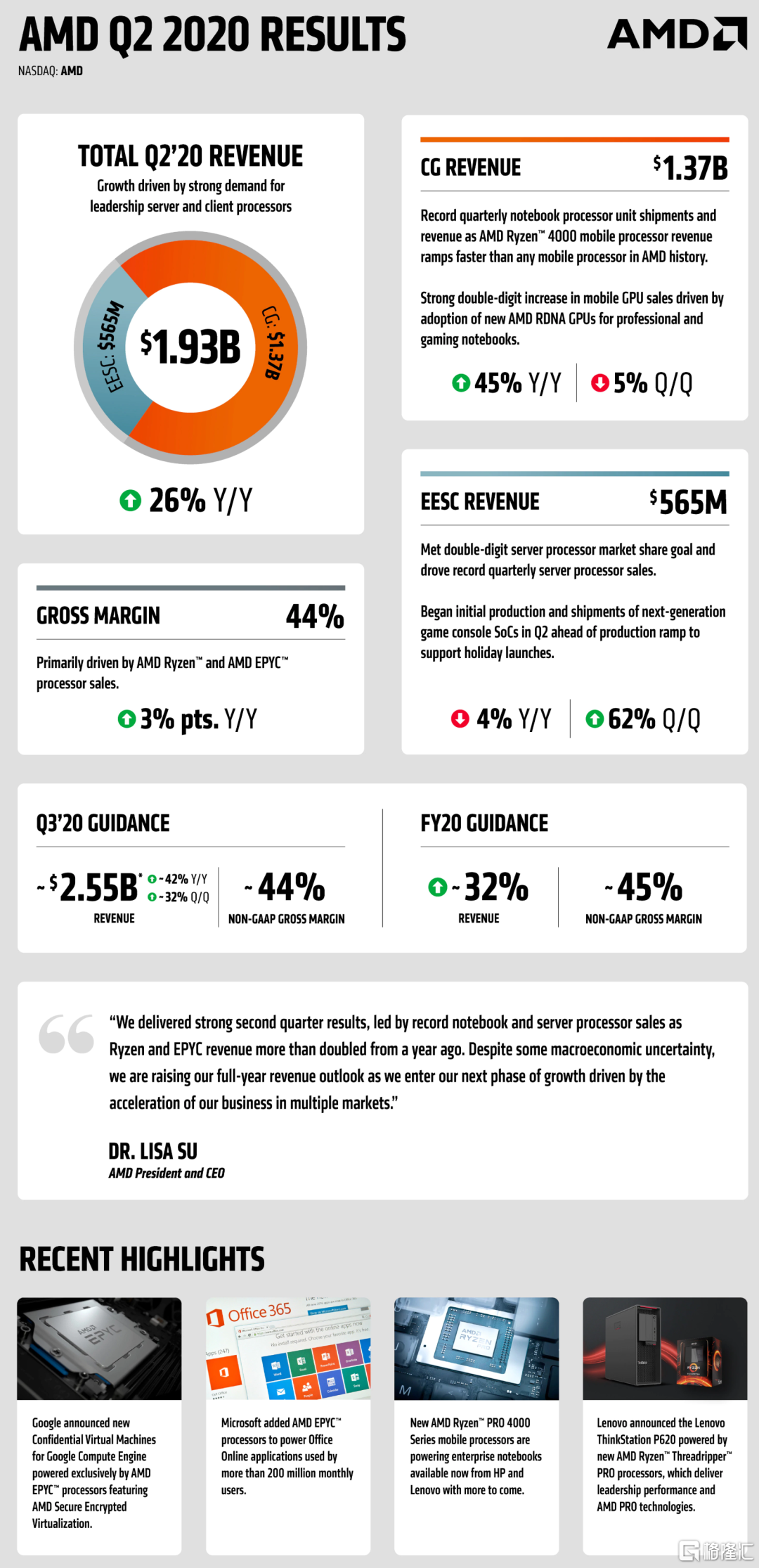 其次是AMD在OEM和SI合作伙伴市场的突破性进展,和对未来更大的预期。今年锐龙4000系列移动处理器取得了重大突破,不仅在性能上超过了酷睿顶级的笔记本处理器,在功耗控制、发热、续航时间等方面也同样进步明显,获得了联想、惠普、戴尔、华硕、宏基、华为、小米等笔记本厂商的支持。