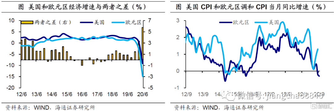 相对经济表现,欧洲弱于美国。最后,从相对经济表现而言,欧洲还是要弱于美国。181季度以来美国各季度的经济增长速度均要快于欧元区的水平。而即便遭遇到疫情,20年各月美国CPI同比增速仍能够维持正增长,但欧元区8月开始调和CPI同比增速就由正转负,9月增速降幅小幅扩大。