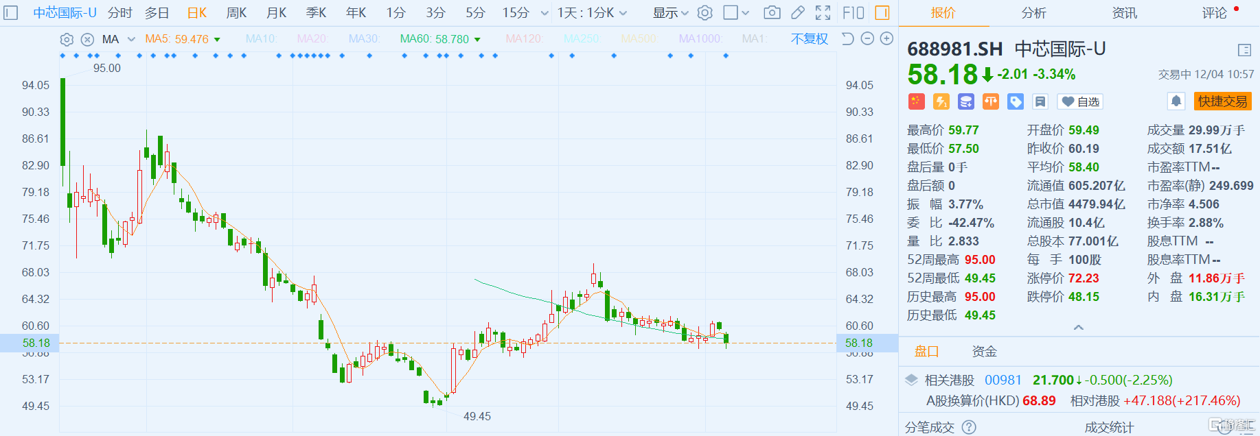 中芯国际AH股齐涨 携手大基金二期及亦庄国投成立合资 开发12寸晶圆生产设施