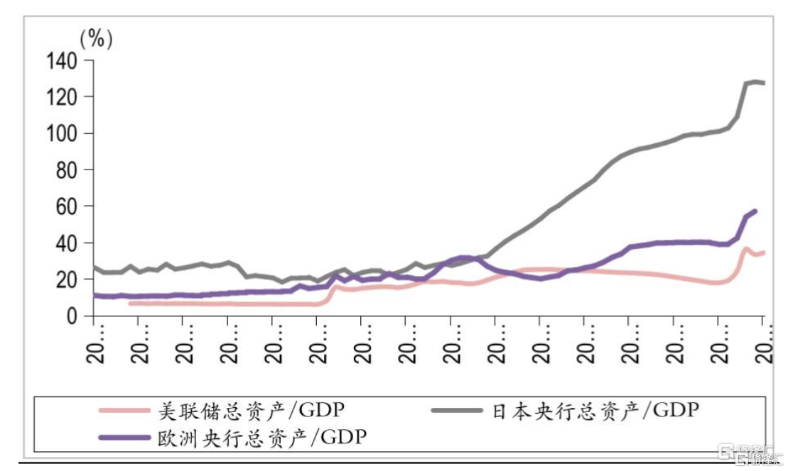 新冠疫情以来,以美联储为首的各国央行释放出天量货币,美联储仅一年时间就累计扩表约3.7万亿美元,超过上一轮金融危机的总和。截至今年4月,欧洲央行和日本央行,同期分别累计扩表3.9万亿美元和1.2万亿美元,等于再造了一个疫情前的美联储。