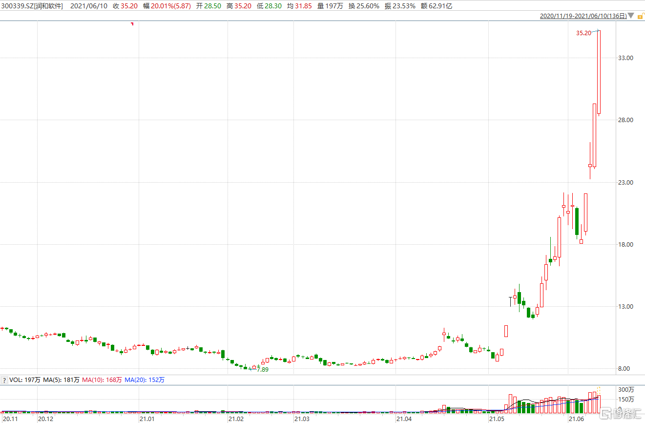 润和软件(300339.SZ)再度涨停 本周股价暴涨超90%