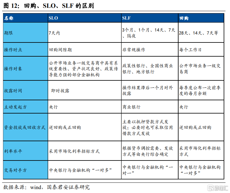2)此外,與回購、SLO不同,SLF交易對手範圍更爲廣泛,覆蓋了所有的商業銀行,並且屬於銀行——央行的“一對一”投放,對流動性的調節更加具有針對性。