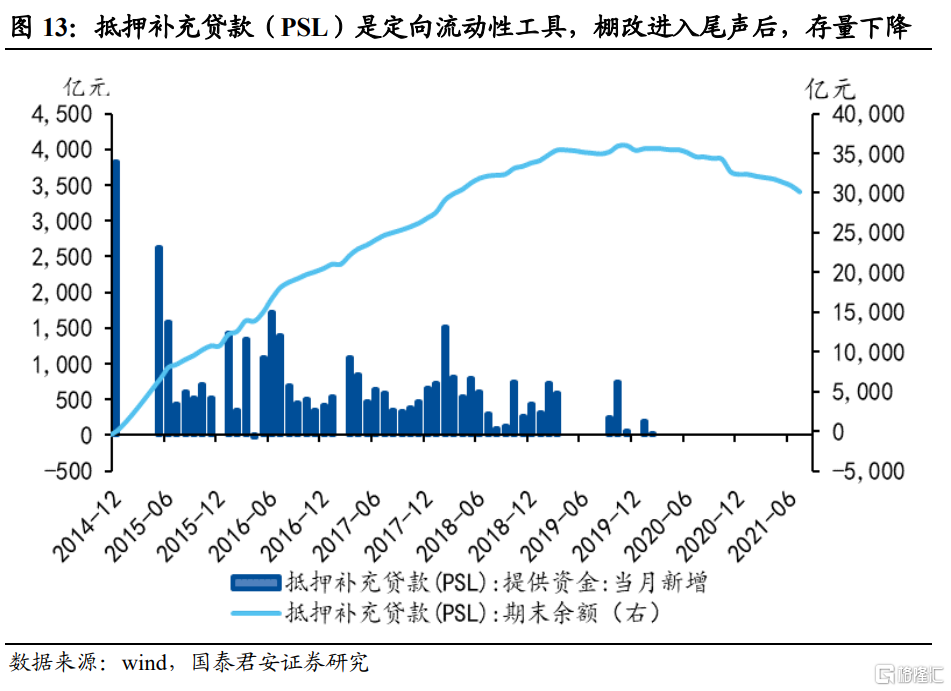 第三,抵押補充貸款(PSL)創設於2014年4月,是定向的流動性工具,是央行實施的結構性調控方式之一。操作對象主要爲政策性銀行,主要向三農、小微企業,以及棚戶區改造等特定對象提供長期大額穩定的資金(期限爲3-5年),引導的是中期利率。這一工具與再貸款較爲相似,但是再貸款是無抵押信用貸款,而PSL則需要將高等級債券資產和優質信貸資產作爲抵押品。