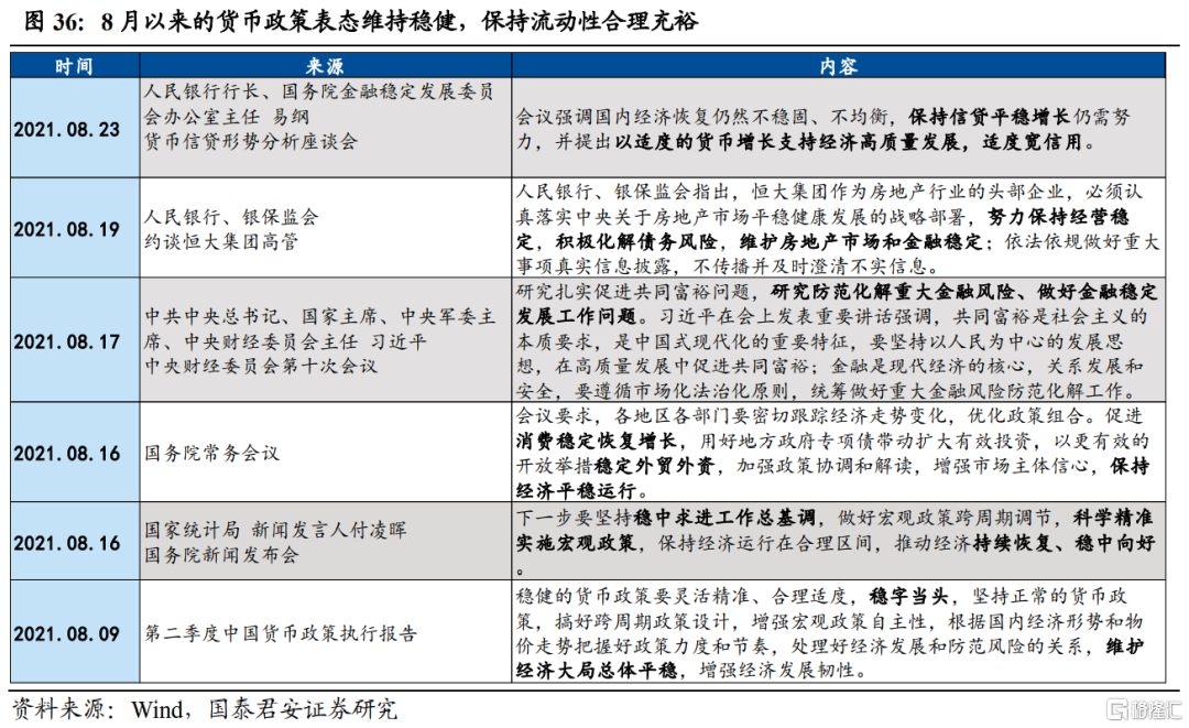 2) 財政支出方面,9月作爲季末,是傳統意義上的財政支出大月,前期財政支出慢,下半年財政儲備力量又較多,從意願和能力兩個維度將助推9月支出高於季節性。我們認爲21年9月可能高於最近5年的支出均值2.3萬億,大約在2.5萬億左右。綜合收支情況,預計財政將會超額支出1.3萬億。