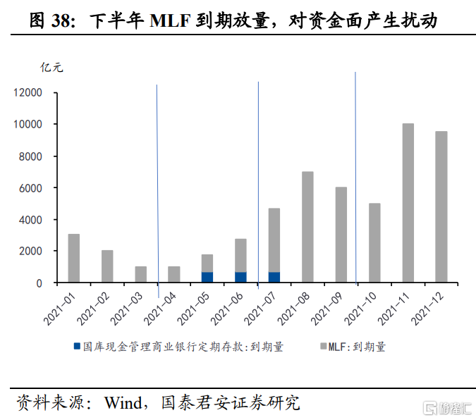 僅從超儲視角,展望半年度的流動性核心需要找到預期之外非常規的因素。以2021年下半年爲例,我們認爲MLF到期集中放量,以及地方債的發行擾動下,資金利率波動加大是大概率事件,屆時需要繼續觀察央行的對衝操作強度,特別是再次降準、OMO操作以及再貸款等結構性工具的投放。