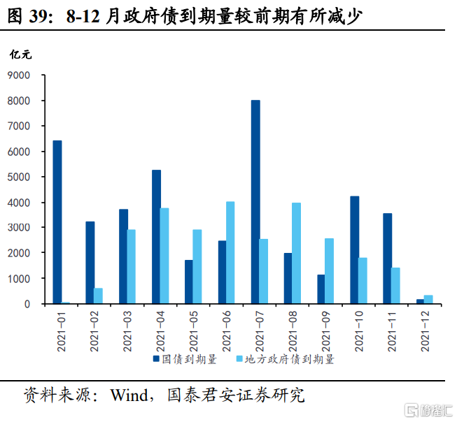 目前來看,國債方面還剩餘2.2萬億的淨融資額度,剩餘9-12月月均的淨增量在4500億元左右,略高於往年3000億元的水平。而8、9、12月到期量較少,分別爲1965億元、1133億元以及151億元,與7月、10、11月份形成鮮明對比,因此國債供給的高峯也在8、9、12月份,預計這3月份淨融資額平均可達5000億元,而10、11月淨融資額約4000億元。