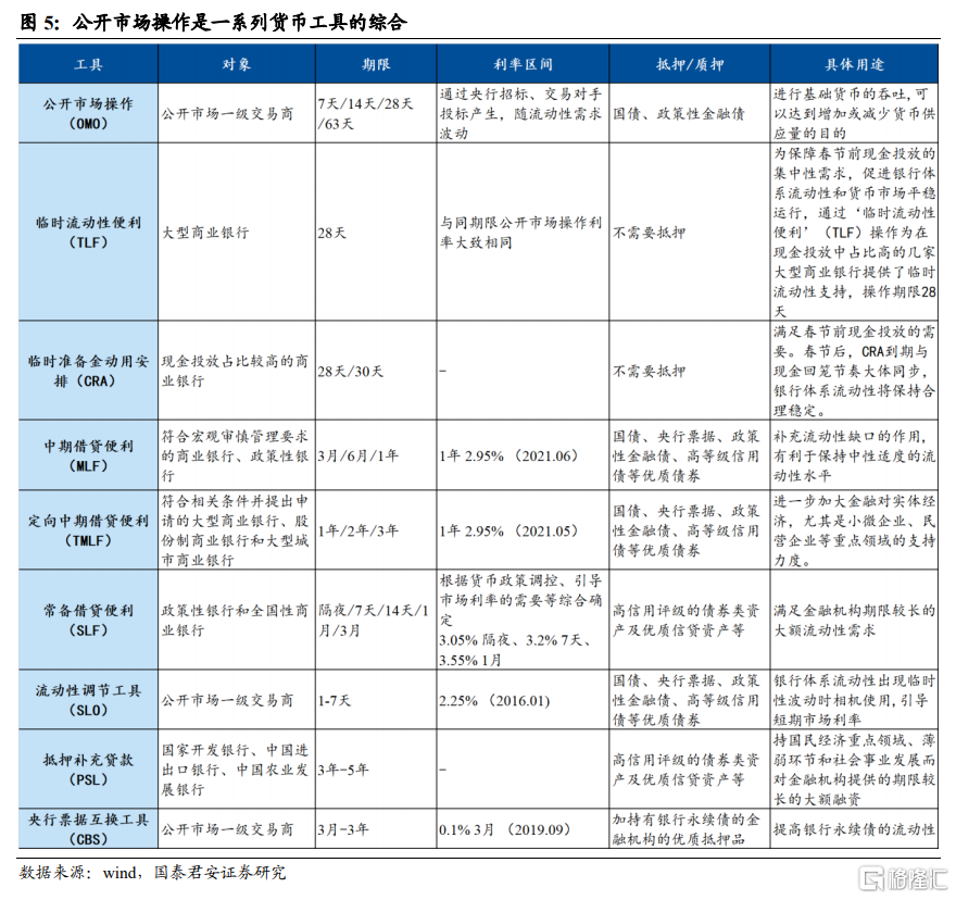 2)而新型的工具按照創設時間順序,分別是流動性調節工具(SLO)、常備借貸便利(SLF)、抵押補充貸款(PSL)、中期借貸便利(MLF)、臨時流動性便利(TLF)、臨時準備金動用安排(CRA)、定向中期借貸便利(TMLF)、央行票據互換工具(CBS)。