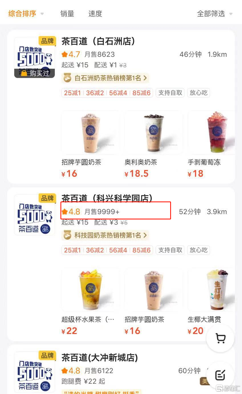 一方面,它所採取的加盟模式,利於門店的快速擴張,還賺了不少加盟費,目前茶百道全國門店超過5000家;再者,相對性價比的產品在社交媒體的多元化營銷下贏得熱度,突出存在感。