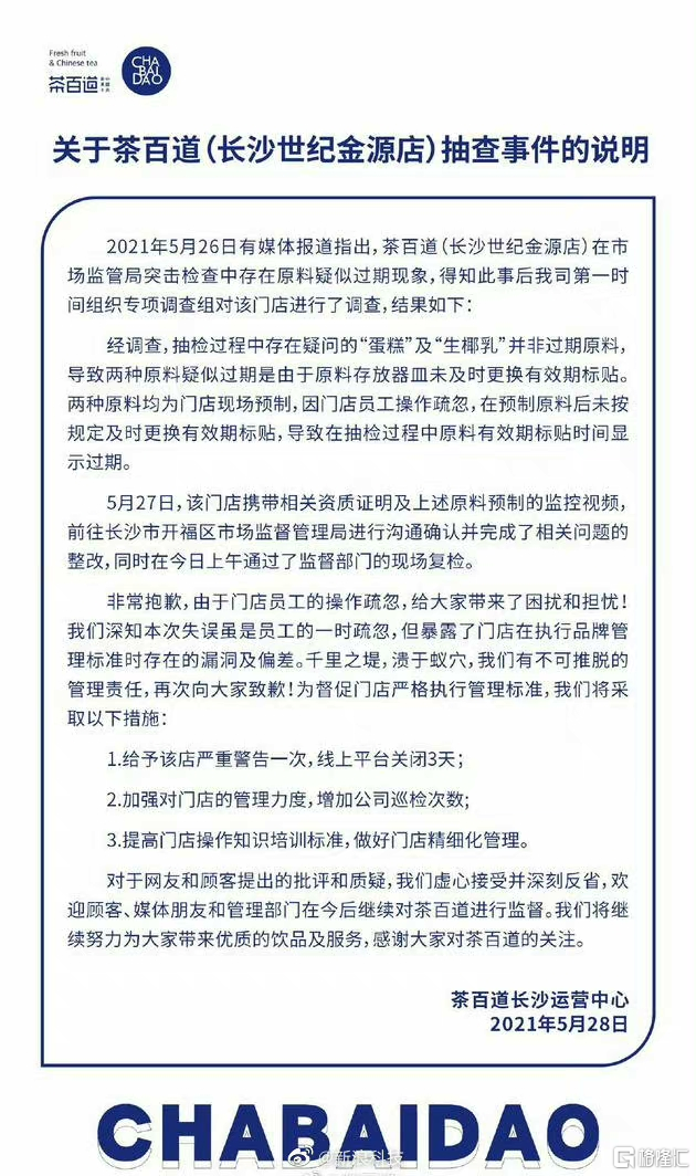 本文的茶百道也翻過幾次車,今年以來,在市場監管局的突擊檢查下,一些門店出現了使用過期、未經檢疫的原料、原材料混放、管理混亂等問題。