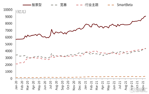 圖表:國內股票ETF規模變化(按指數類別)