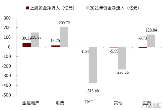 主要市場:發達市場股票ETF資金淨流入大幅收縮。上週,發達市場與新興市場股票ETF資金淨流入有所分化,其中發達市場資金邊際淨流入量大幅收縮,由172億美元下降至87億美元,新興市場資金淨流入由15億美元小幅抬升至24億美元。債券ETF方面,發達及新興市場債券ETF資金淨流入均大幅收縮,分別收縮至37億美元和1億美元。