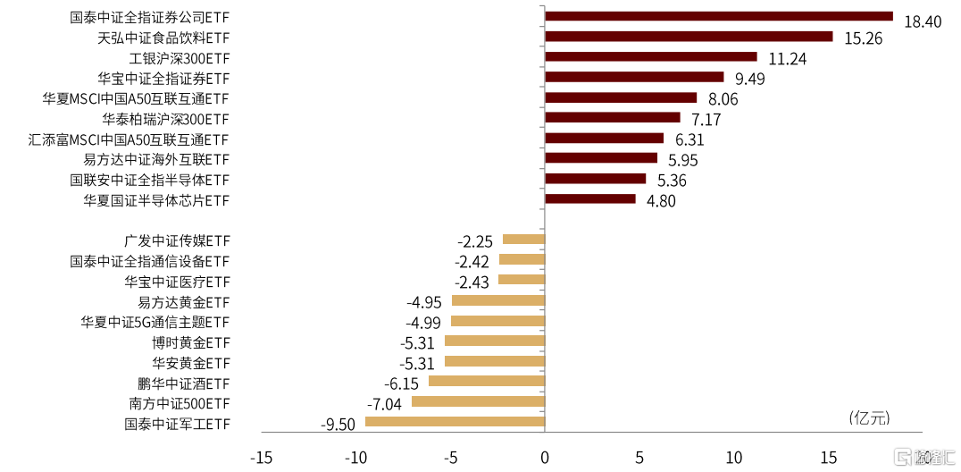 圖表:上週國內非貨幣ETF資金淨流入(出)前十