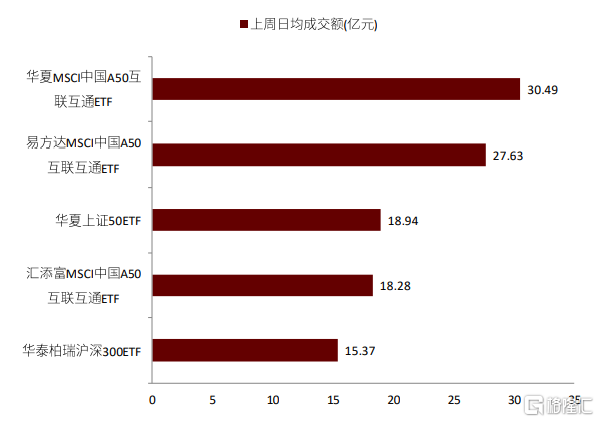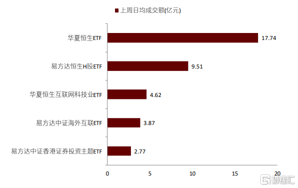 圖表:上週跨境ETF日均成交最大額前五