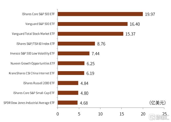 圖表:上週全球權益類ETF淨流入前十