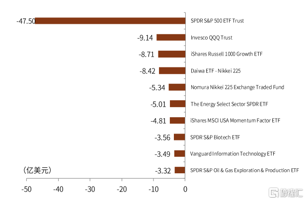 圖表:上週全球權益類ETF淨流出前十