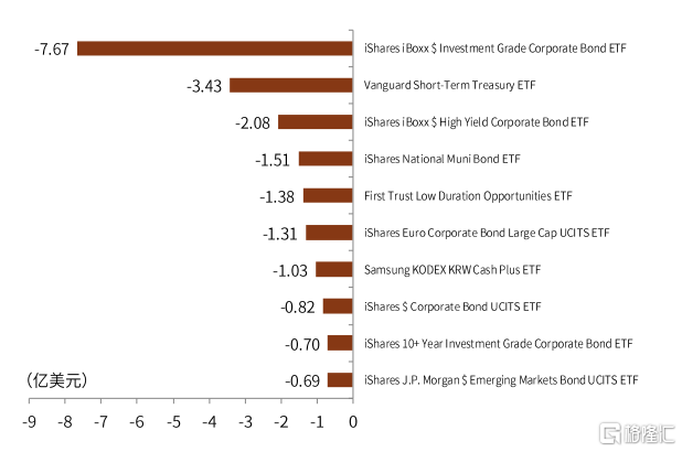 圖表:上週全球債券類ETF淨流出前十
