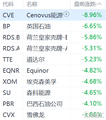 格隆匯11月26日丨受新型變異新冠病毒影響,布倫特原油期貨大跌逾4%、WTI原油期貨重挫近6%。美股石油股盤前跟隨大跌,Cenovus能源跌9%、英國石油跌6.6%,道達爾、荷蘭皇家殼牌跌超5%,埃克森美孚跌4.6%。