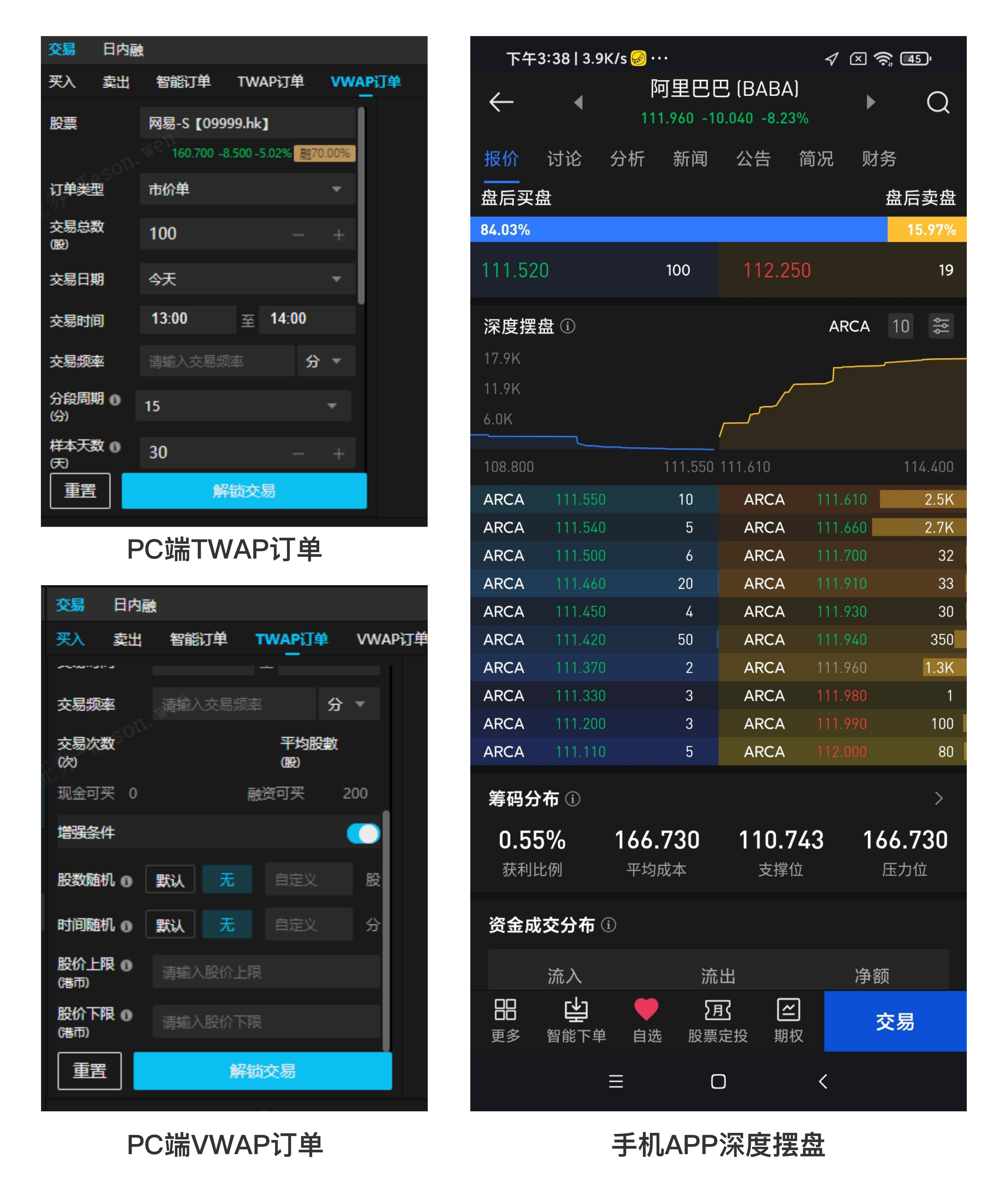 針對較爲專業的港美股投資人,uSMART盈立證券不僅提供APP,還可提供PC、API等交易方式。提供美股深度擺盤,PC端上線了TWAP、VWAP,可以多窗口瀏覽行情和交易,滿足專業人士更加快捷、更加多元的投資需求。