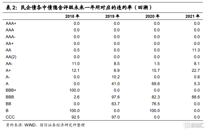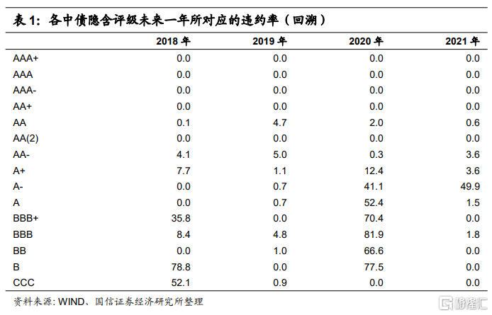 另外綜合過去四年各中債隱含評級下一年所對應的違約率數據,2018年至2021年有如下結論: