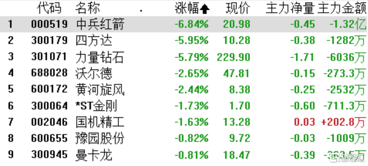 培育鑽石板塊延續近期跌勢。中兵紅箭跌逾7%,力量鑽石跌逾6%,四方達跌逾5%,黃河旋風、沃爾德跌逾2%,國機精工跌逾1%。