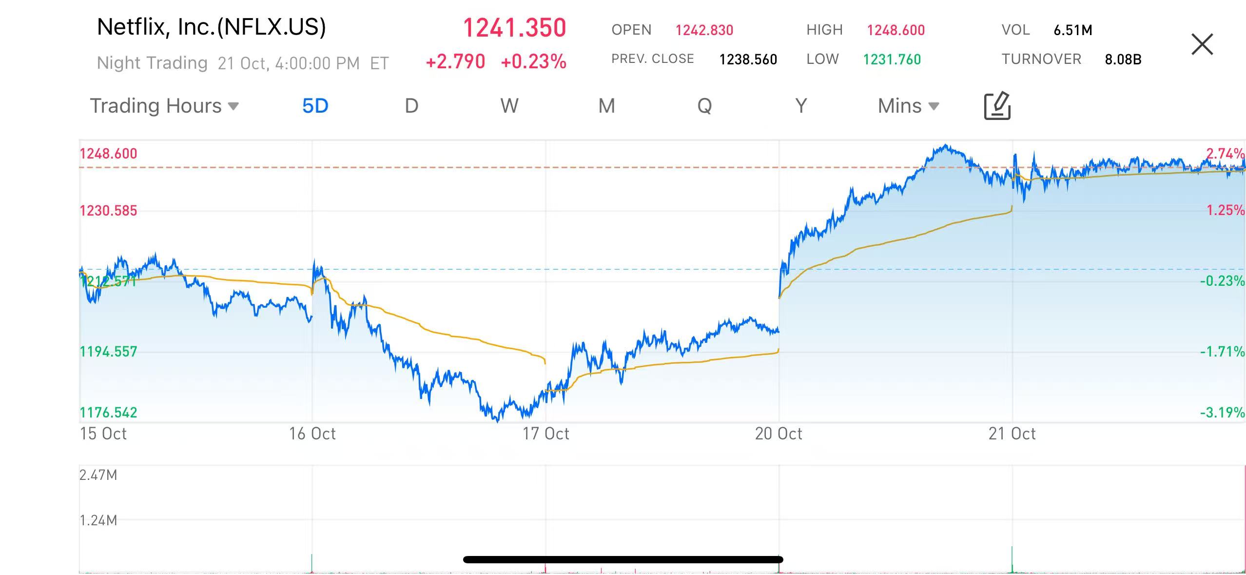 U streaming giant Netflix (NASDAQ: NFLX) reported stronger-than-expected results for the third quarter of 2025, with both revenue and earnings surpassing market forecasts. The upbeat performance fueled a sustained post-earnings rally in its share price. As of the latest close, Netflix traded at US$1,241.35, firmly above the US$1,200 level, signaling renewed capital inflows. Analysts attributed the rally to improved profit quality and an optimized business structure.