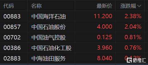 格隆匯5月5日丨中海油漲2.3%,中石油漲2%,中石化漲約1%。歐盟公佈逐步禁運俄羅斯石油的計劃,國際原油期貨加速上漲,美國WTI原油昨日漲超5%,創三週來最大單日漲幅。早盤上期所燃油期貨主力合約一度漲超5%。此外,美國至4月29日當週EIA戰略石油儲備庫存爲2001年12月28日當週以來最低。