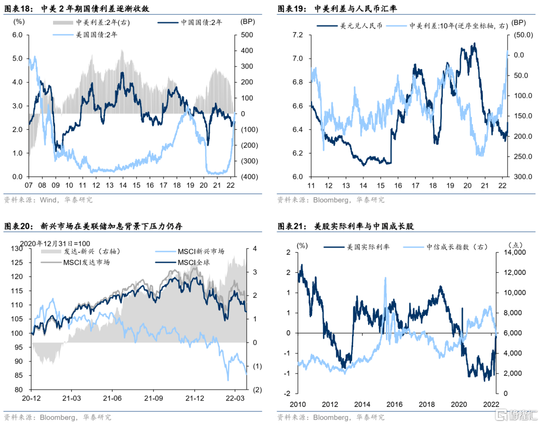 4)美元指數:美聯儲加息正式落地,5月正式公佈加息+縮表計劃,美元已在新的高中樞上維持震盪。人民幣相應承壓,但相比其他非美貨幣仍然偏強,往後看,我疫情防控有效、產業鏈門類齊全、通脹壓力不高,中美實際利差仍處於較高水平,故人民幣並不一定隨美元指數走強而大幅轉弱,維持一季度可能是中美貨幣政策錯位相對突出時點、人民幣年內先小幅走弱再轉強的判斷。