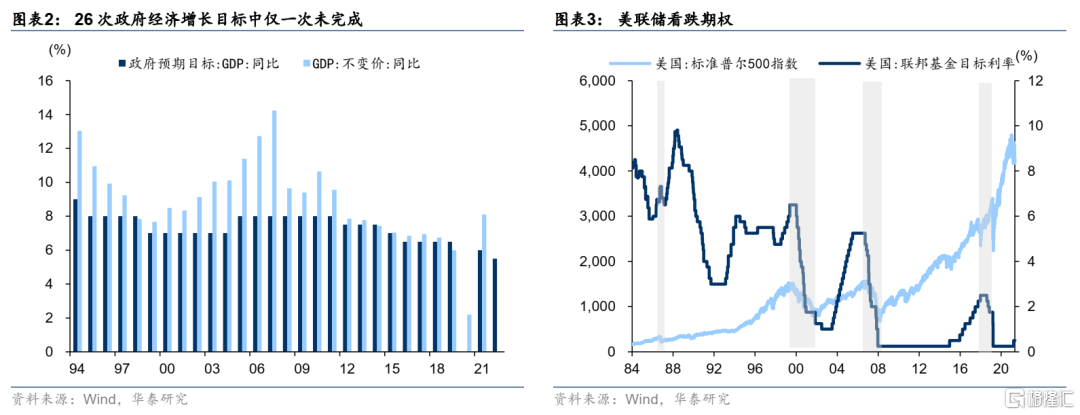 以去年底中央經濟工作會議爲標誌,經濟工作重心全面轉向“穩增長”,兩會提出5.5%的增長目標進一步彰顯決心。歷史上,政府全年增長目標幾乎全部實現,唯一的例外是在1998年,大洪水衝擊下全年實現GDP增長7.85%,和8.00%的目標差之毫釐。