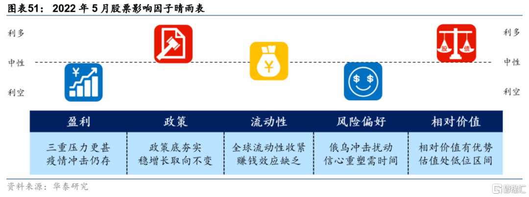 4)風險偏好:俄烏衝突升級、疫情持續擾動等因素壓制風險偏好。後續關注地緣政治、房地產政策、中美錯位和美聯儲加息節奏等;