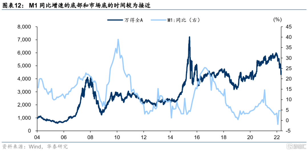 第二、國內經濟底隱現,關注寬信用效果,但疫情仍將帶來困擾。4月份PMI數據有可能是年內低點,意味着經濟底出現。寬信用方面,關注M1同比增速的回升,本質上是寬信用、寬財政的效果落地以及對股市的溢出效應。覆盤來看,M1同比增速的底部和市場底的時間較爲接近,但前後順序並不穩定,不過M1的明顯回升往往意味着市場開始進入右側的啓動階段。