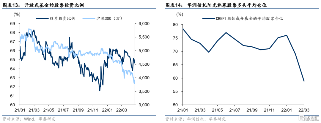 第三、從機構倉位等判斷市場情緒已經足夠悲觀。機構倉位方面,微觀看,知名私募等投資者股票倉位已經在歷史低位,而公募還有較多制約、需要時間來化解。Wind估算4月末開放式基金的股票投資比例爲64.6%,較2月高點下降約3.5個百分點。華潤信託陽光私募股票多頭指數(CREFI指數)月報顯示,截至3月末,CREFI指數成分基金的平均股票倉位爲58.93%,較2月末下降10.18個百分點。
