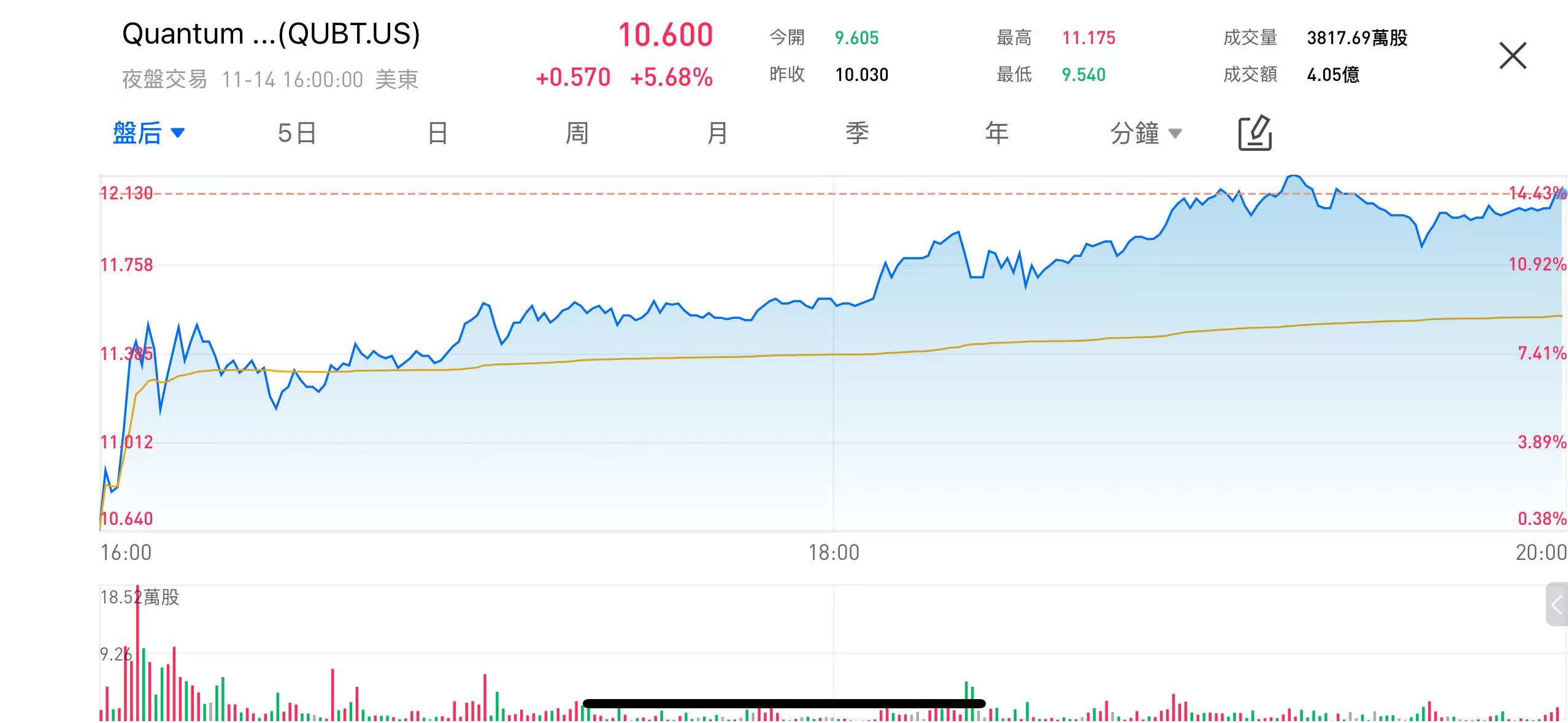 Quantum Computing Inc. (QUBT.US), a rising star in the quantum computing space, saw its stock price surge significantly following the release of its third-quarter earnings report, with after-hours trading jumping more than 5%. The stock briefly surpassed the $11 range, with a notable increase in daily trading volume. Investors widely view this quarter's performance as a key signal of the company's accelerating commercialization path, driving heightened market interest in the quantum computing sector. The stock price movement reflects a reassessment of the company's future growth expectations, with the earnings report serving as a major catalyst for the upward trend.
