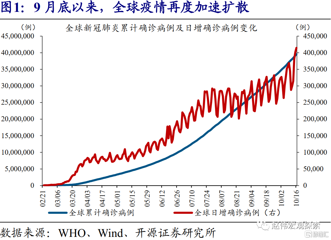 事件:9月底以来,全球疫情再度呈现加速扩散态势,欧洲、美国等地区新增确诊病例持续反弹。