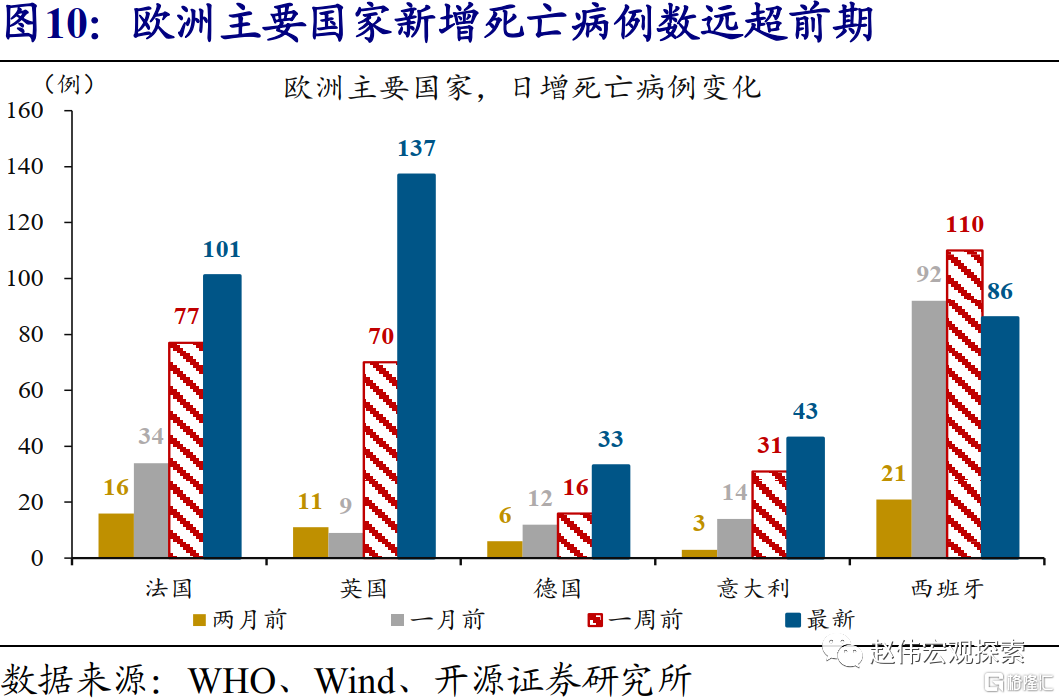 因疫情反弹速度过快、快速消耗医疗资源等,欧洲多国新增死亡病例大增。9月以来,随着疫情快速反弹,欧洲多国的住院人数激增。最新住院数据显示,英国、法国、意大利的住院人数分别达到8671人、4650人、5273人,远超2个月前。医疗资源日益紧张背景下,欧洲各国新增死亡病例相继“止跌反弹”。与8月相比,法国、西班牙、英国日增死亡病例已分别从11例/天、21例/天、16例/天,大幅增加至101例/天、86例/天、137例/天。