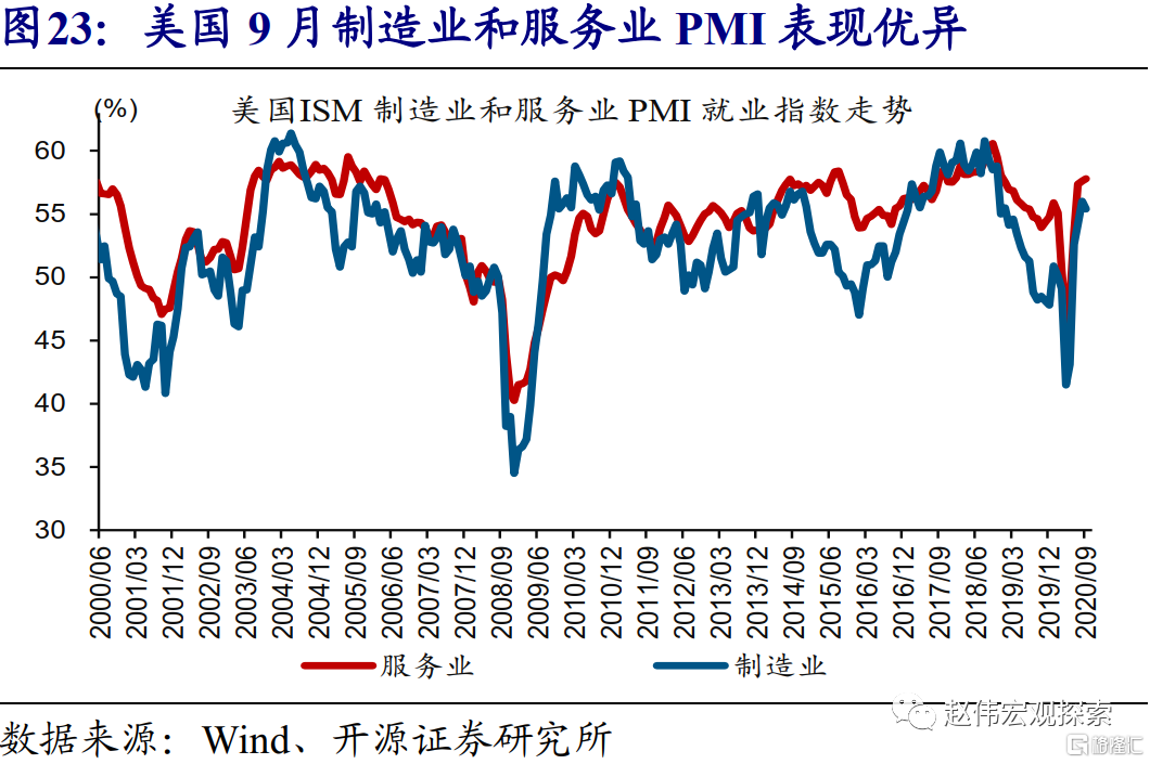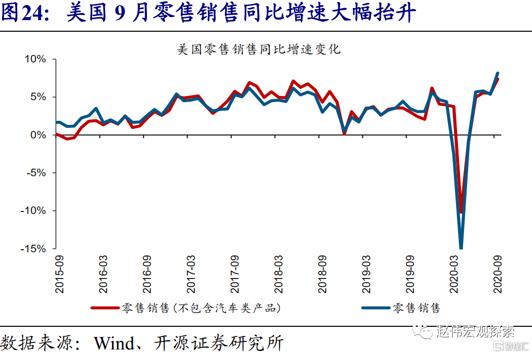 相比欧洲,主要人口大州控制住疫情、新增死亡病例持续低企背景下,美国疫情风险或整体可控,不改经济继续向好前景。美国人口主要聚集在中大西洋地区和南部地区,这两个地区的15个人口大州的人口占全美比重超过60%。7月以来,随着不断提升防控力度,美国中大西洋和南部地区的疫情逐渐可控。受此影响,美国整体新增死亡病例不断下滑。疫情冲击消退下,美国主要人口大州有序推进复工复产进程,总体经济前景不断向好。最新经济数据显示,美国9月服务业PMI升至近2年新高,9月零售销售增速也大超预期、刷新2011年以来新高。