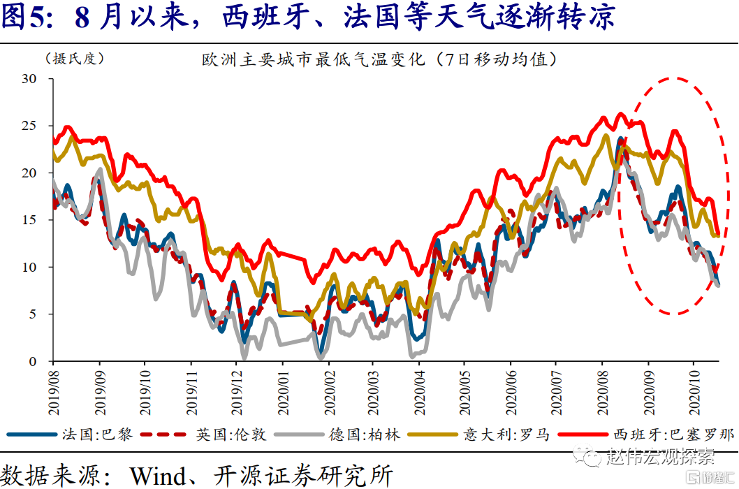 天气转凉等因素触发下,西班牙、法国等疫情率先大幅反弹,并向欧洲全境扩散。8月入秋以来,西班牙、法国等大幅降温,叠加游客众多、防控松散,疫情率先出现反弹。而大量游客出入西班牙、法国等,使疫情随后向欧洲全境大范围扩散。截至10月16日,法国、英国、西班牙新增确诊病例分别达到25086、15648、14269例/天,均创下疫情爆发以来新高。德国、意大利新增确诊病例也超过了4000例/天,逼近今年4月高点。