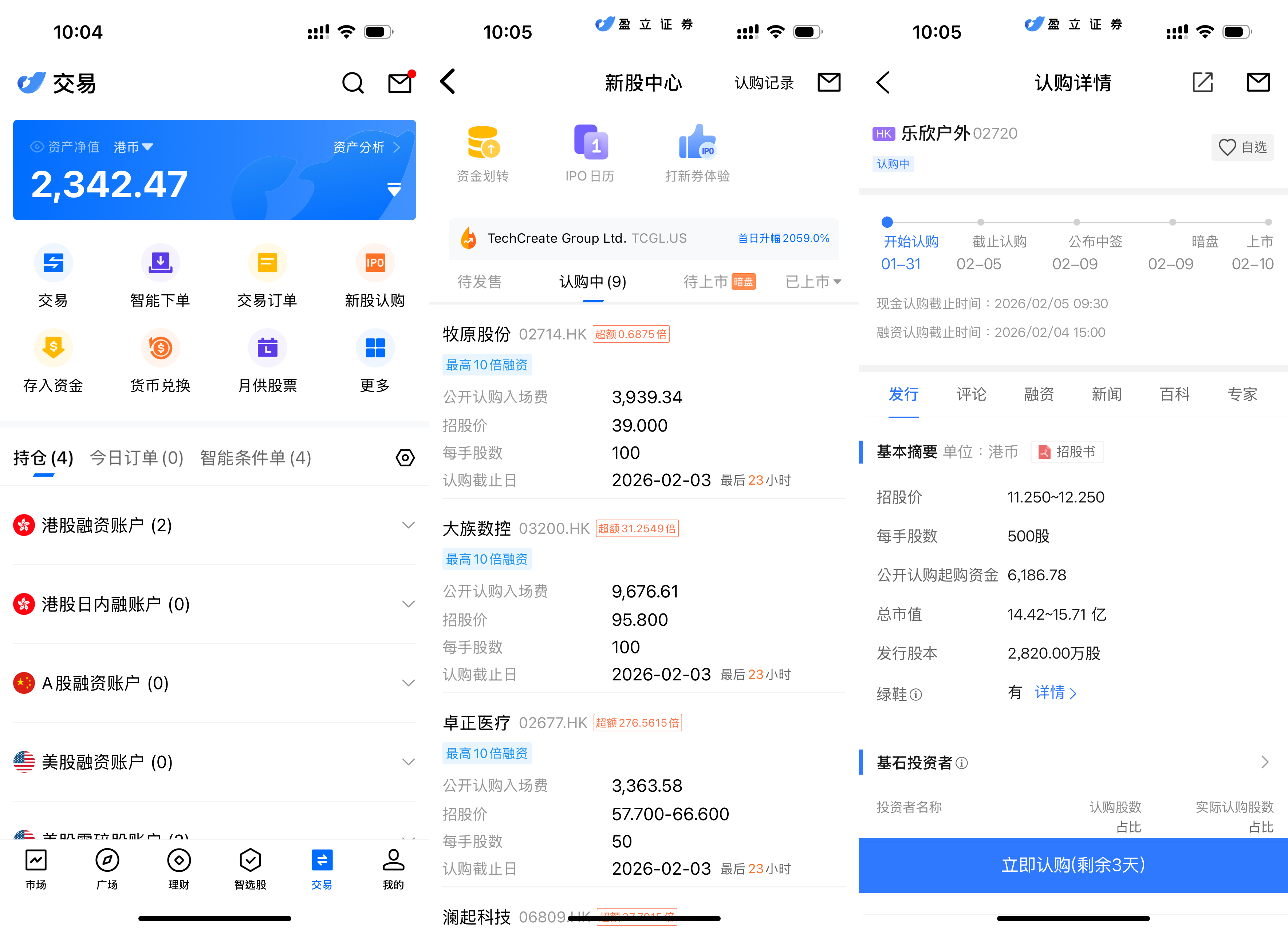 uSMART HK App 设有 IPO 中心,提供独家优惠,客户可在 App 即时认购公开发售之新股。登入 uSMART HK App 后,点选右下角「交易」,进入「新股认购」,选择乐欣户外后点击「公开认购」,填写认购数量并提交订单即可。