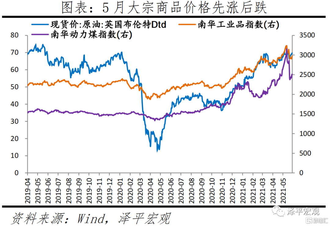 5月19日国务院常务会议要求“保障大宗商品供给,遏制其价格不合理上涨”,上周(5月24-28日)布伦特原油均价环比1.5%,南华工业品指数环比-3.4%,南华螺纹钢环比-9.3%,LME铜环比-1.9%。