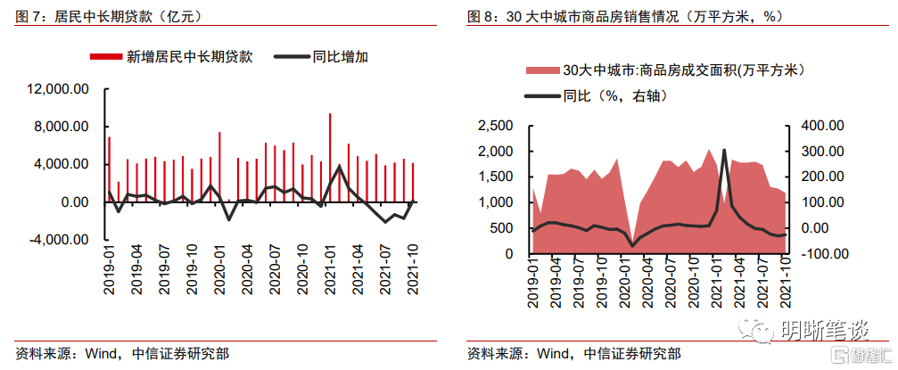 第二,在政策边际宽松下,与M1相关性较为明显的房地产销售预计将有所回暖。10月住户部门中长贷增4221亿元,同比多增162亿元,是自今年5月以来首次同比多增,个人住房贷款余额37.7万亿元,当月增加3481亿元,较9月多增1013亿元。10月以来按揭贷款的投放明显好于三季度,且从人民银行单独发布个人住房贷款统计数据这一点来看,保障合理住房金融需求的意图明显。综合考虑当前经济内生修复和政策调控思路,预计此前积压的按揭贷款会加速投放,同时RMBS额度也会继续放宽以配合银行出表需求,后续商品房销售有望延续改善。目前30大中城市商品房销售同比已经筑底震荡,可能在明年一季度看到回升,M1也有望在房地产销售的带动下开启上行通道。