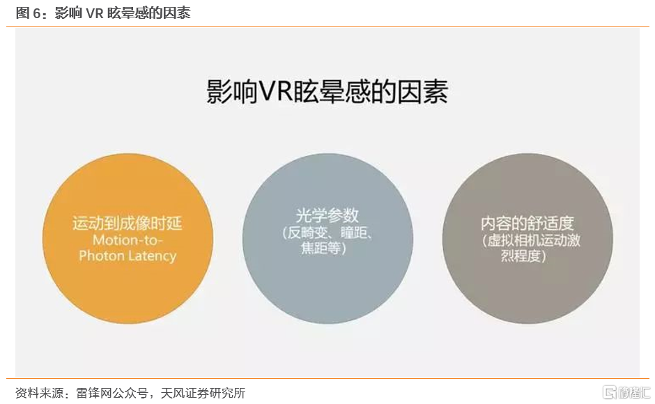 导致VR眩晕的因素不止是时延,而是共有三个:时延、光学参数、内容舒适度。目前的技术已经解决了时延和光学参数的问题,但是在内容设计上带来的眩晕感是无解的,VR游戏和体验中的剧烈运动和快速移动依然可能会让用户眩晕。这完全取决于用户对晕动症的耐受程度,每个人都有所不同。