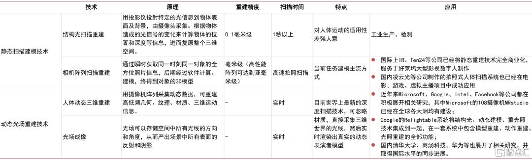 建模:相机阵列扫描应用最广,动态重建有望成为主流。