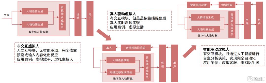 非交互类虚拟人、真人驱动虚拟人和智能驱动虚拟人