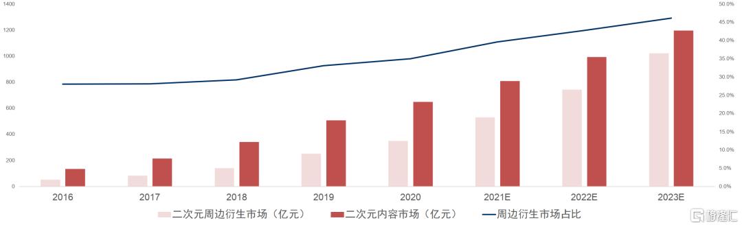 中国周边衍生品在二次元消费市场占比逐年升高