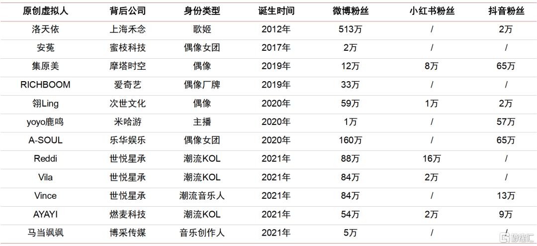 代表性虚拟人: