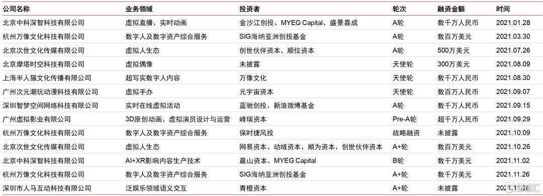2021年虚拟数字人相关融资事件