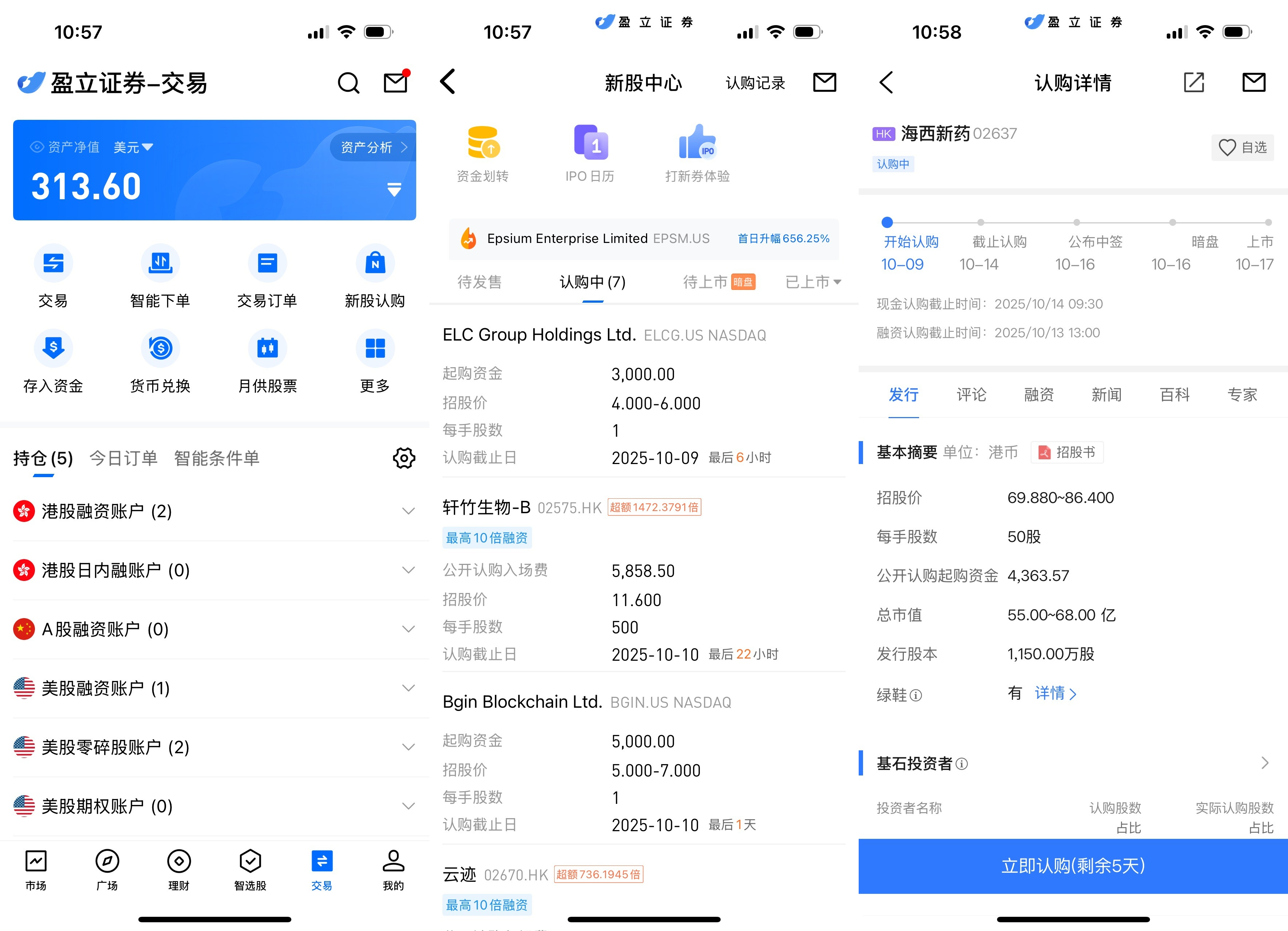 uSMART HK App 设有 IPO 中心,提供独家优惠,客户可在 App 即时认购公开发售之新股。登入 uSMART HK App 后,点选右下角「交易」,进入「新股认购」,选择海西新药后点击「公开认购」,填写认购数量并提交订单即可。